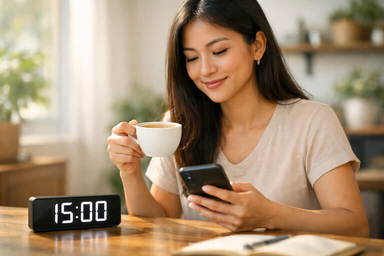 Apenas 15 minutos por dia. O mĂ©todo foi desenhado justamente para mulheres com pouco tempo ou com sobrecarga mental. VocĂȘ pode fazer antes do cafĂ© da manhĂŁ, no almoço ou antes de dormir.